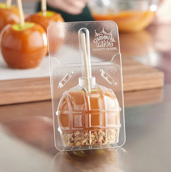 Safely package and present your beautifully decorated larger-sized candy or caramel apple with this large disposable candy apple bubble! This plastic bubble will keep your apples fresh, protected, and professional looking for sale in your candy shop, concession stand, bakery, or gift shop! Its clear construction provides complete product visibility, showcasing the delicious toppings and colors and increasing impulse sales. Its bubble shape also provides ample room so the caramel or other candy coating doesn't stick. A functional and visually-appealing alternative to plastic bags and other containers that only make more of a mess, this apple bubble is sure to exceed your candy packaging needs.